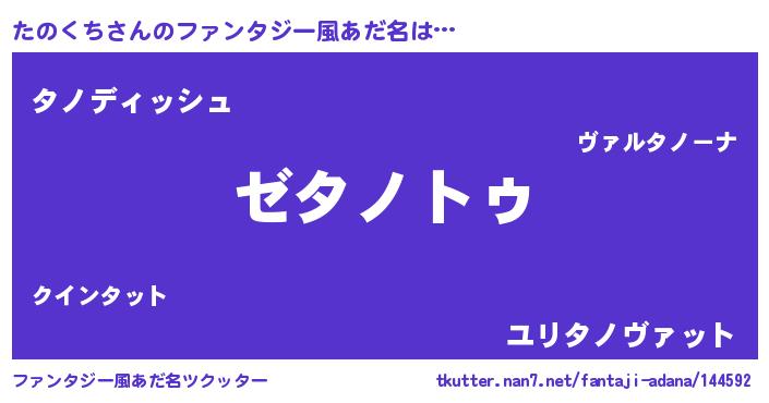 | 男性向けラノベタイトル風あだ名 | 『Re:たのくちから始める異世界生活』 |
