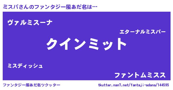 | 女子向けラノベタイトル風あだ名 | 『ミスパ恋絵巻』『ミスパは平凡を望む』 |