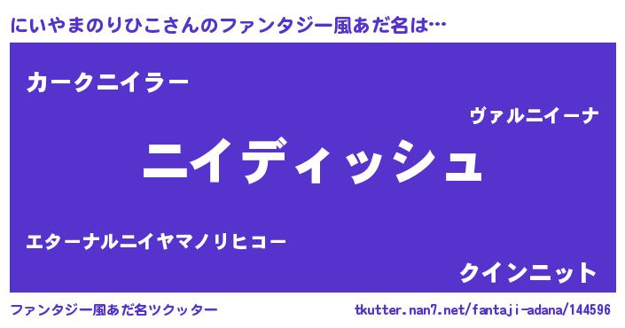 | 女子向けラノベタイトル風あだ名 | 『異世界で失敗しない100のにいやまのりひこ』 |