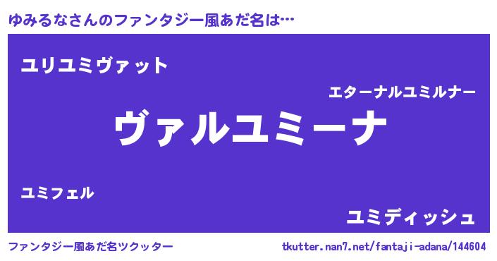 | 女子向けラノベタイトル風あだ名 | 『乙女ゲームの破滅フラグしかない悪役ゆみるなに転生してしまった…』 |