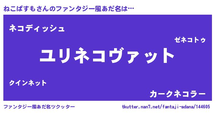 ねこぱすもさんのファンタジー風あだ名をツクッター!
