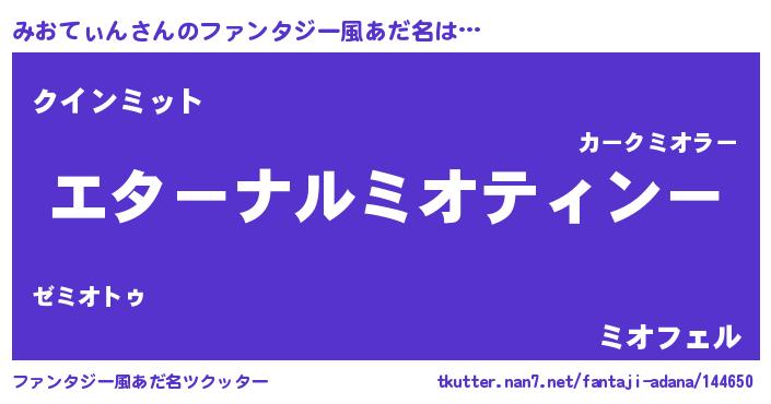 | 意味不明あだ名 | 『みおてぃんフォーエバー』 |