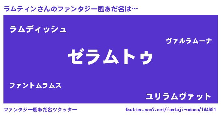 | 男性向けラノベタイトル風あだ名 | 『魔法科高校のラムティン』 |