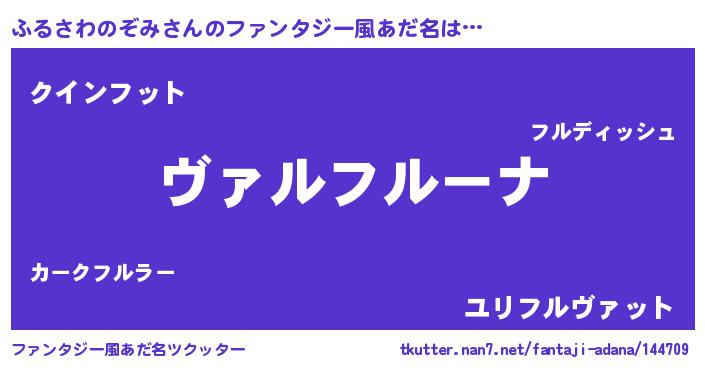 | 女子向けラノベタイトル風あだ名 | 『悪役ふるさわのぞみに転生したようですが、知った事ではありません』 |