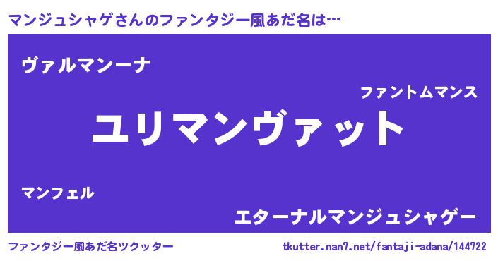 | 男性向けラノベタイトル風あだ名 | 『転生したらマンジュシャゲだった件』 |