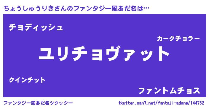 | 女子向けラノベタイトル風あだ名 | 『ちょうしゅうりきの玉の輿計画!』 |
