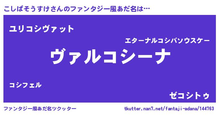 | 男性向けラノベタイトル風あだ名 | 『魔弾の王とこしばそうすけ』 |