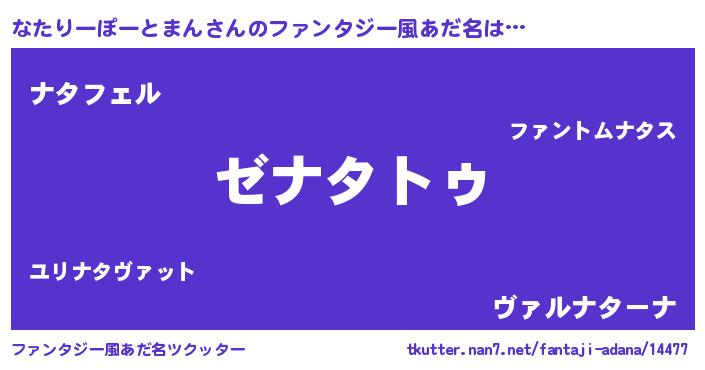 | 意味不明あだ名 | 『自称なたりーぽーとまん』 |
