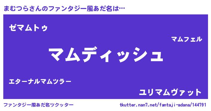 | ヒーロー風カッコイイあだ名 | 『ネオマムツラ』『ウルトラ戦士マムツラ』 |