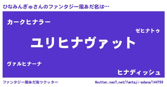 | 男性向けラノベタイトル風あだ名 | 『ヒナミンギュスレイヤー』 |