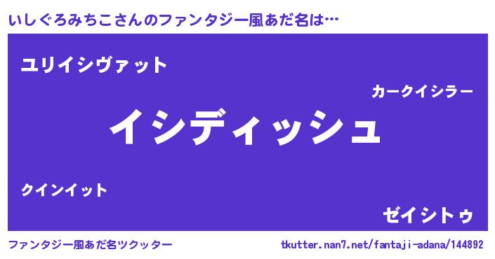 | ヘコむあだ名 | 『いしぐろみちこ(震え声)』『いしっぺ』 |