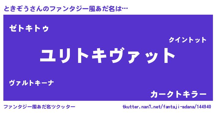 | ヒーロー風カッコイイあだ名 | 『サイバー戦士トキゾウ』『仮面トキダー』 |