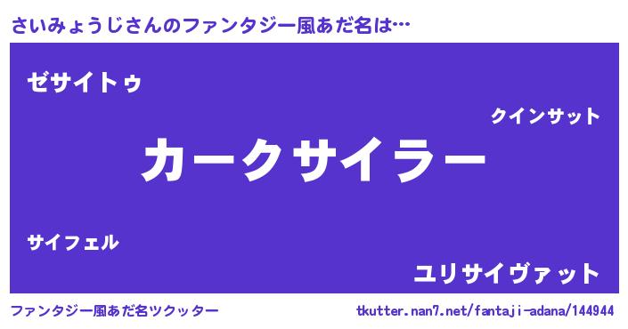 | 男性向けラノベタイトル風あだ名 | 『うちのさいみょうじが世界を掌握している!』 |