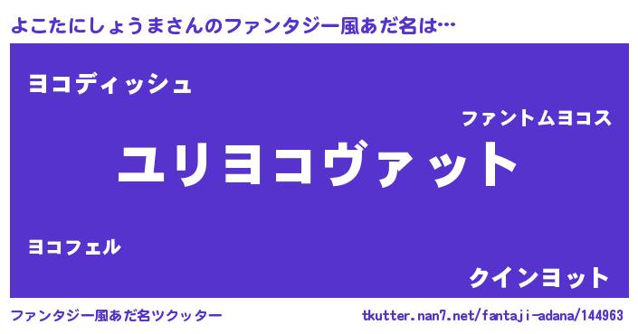 | 男性向けラノベタイトル風あだ名 | 『ヨコタニショウマスレイヤー』 |