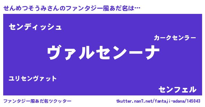 | 意味不明あだ名 | 『住所不定無職せんめつそうみ(9歳)』 |