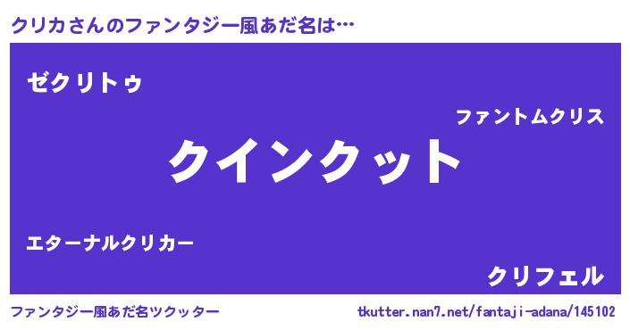 | 意味不明あだ名 | 『眠気覚ましガムクリカ味』『自称クリカ』 |