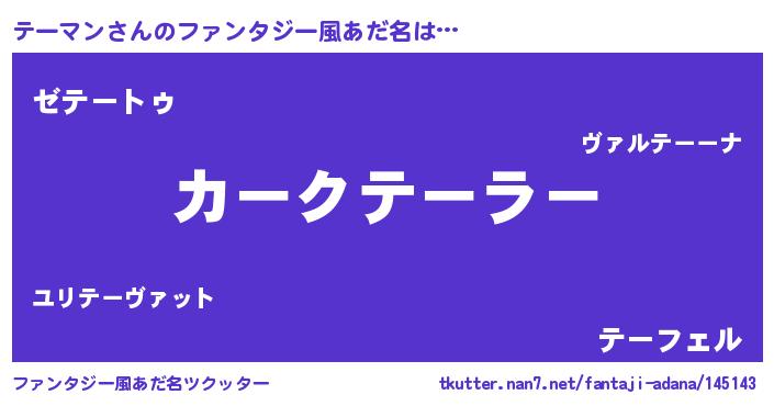 | ヒーロー風カッコイイあだ名 | 『ウルトラ戦士テーマン』『仮面テーダー』 |