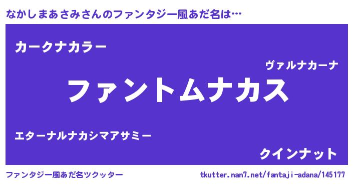 | 意味不明あだ名 | 『とにかく怪しいなかしまあさみ』 |