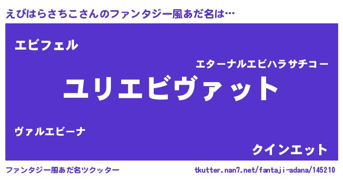 | 伝説のあだ名 | 『封印されしスナイパーえびはらさちこ』 |