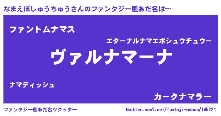 | ヘコむあだ名 | 『なまを』『レバニラ』『なまもー』 |