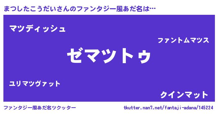 | 意味不明あだ名 | 『自称まつしたこうだい』 |
