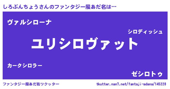 | 男性向けラノベタイトル風あだ名 | 『しろぶんちょう~年齢イコール彼女いない歴の魔法使い~』 |