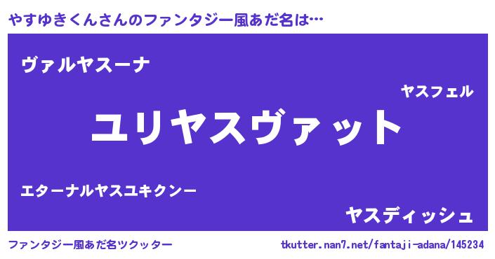 | 男性向けラノベタイトル風あだ名 | 『やすゆきくん~年齢イコール彼女いない歴の魔法使い~』 |