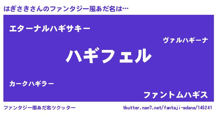 | 胡散臭い通販商品みたいなあだ名 | 『モテモテ間違いなし水晶球…その名も「はぎさき」』 |