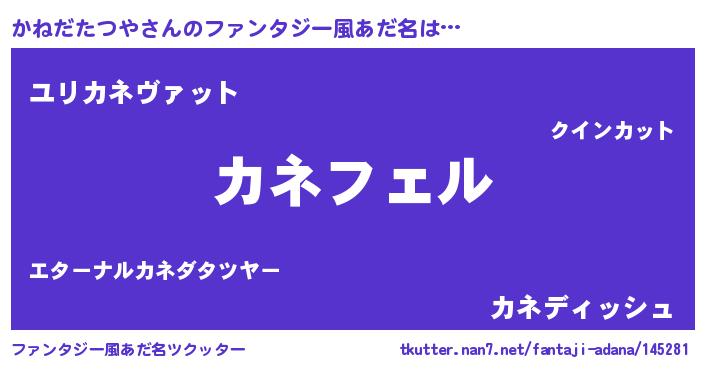 | 男性向けラノベタイトル風あだ名 | 『かねだたつやの憂鬱』 |