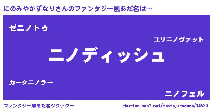 | 男性向けラノベタイトル風あだ名 | 『にのみやかずなりという概念が存在しない退屈な世界 』 |