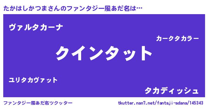 | 男性向けラノベタイトル風あだ名 | 『おまえをオタクにしてやるから、俺をたかはしかつまにしてくれ! 』 |