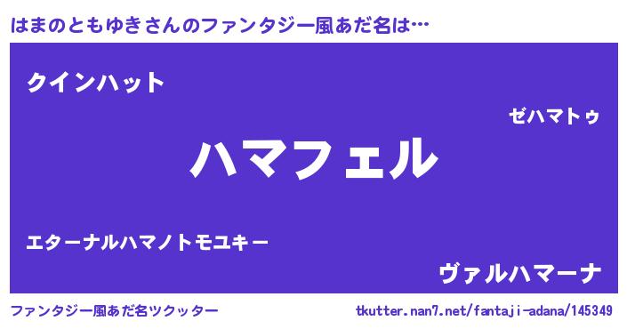 | 男性向けラノベタイトル風あだ名 | 『はまのともゆきの憂鬱』 |