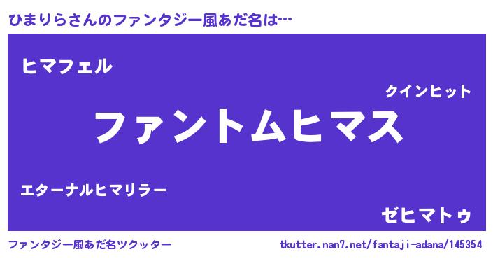 | ヒーロー風カッコイイあだ名 | 『天弓騎士ヒマ』『スーパーヒマリラ』 |