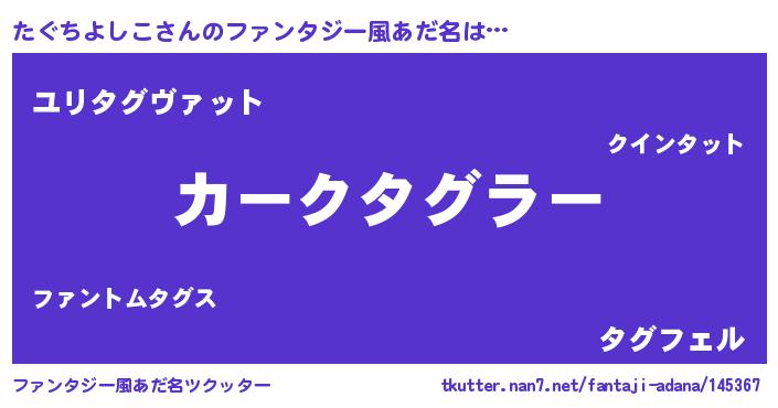 | ヒーロー風カッコイイあだ名 | 『スーパータグチヨシコ』『暗黒騎士タグ』 |
