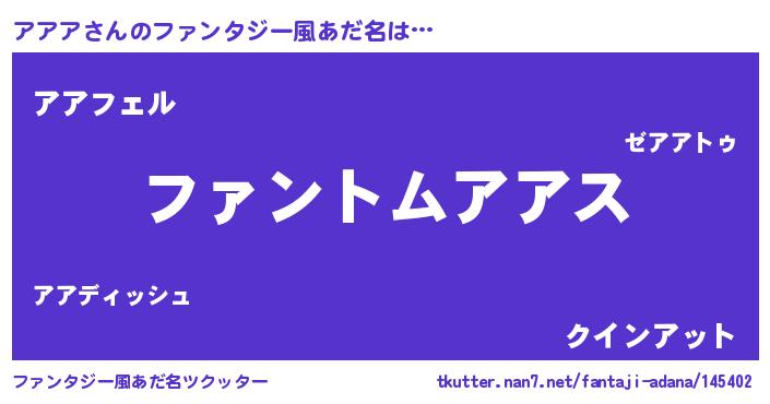 | 男性向けラノベタイトル風あだ名 | 『ダンジョンにアアアを求めるのは間違っているだろうか』 |