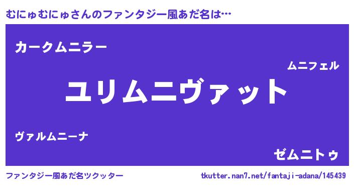 | ヘコむあだ名 | 『むにっふぃ~』『むにゅむにゅ(遠い目)』 |
