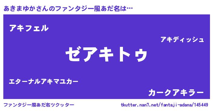 | 意味不明あだ名 | 『自称あきまゆか』『ペロリンあきまゆか』 |
