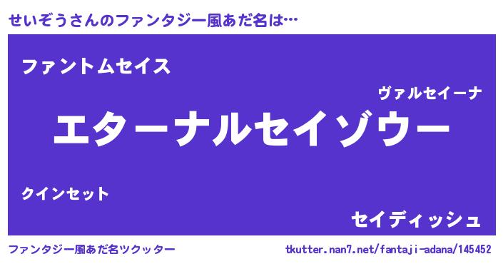 | ポケモン風あだ名 | 『セイゾダネ』『ヒセイゾウ』 |