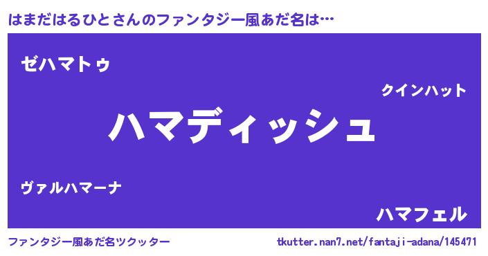 | ヘコむあだ名 | 『はまだはるひと(爆)』『はまにゅー』 |