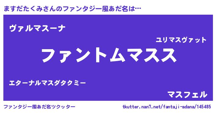 | 男性向けラノベタイトル風あだ名 | 『ダンジョンにますだたくみを求めるのは間違っているだろうか』 |