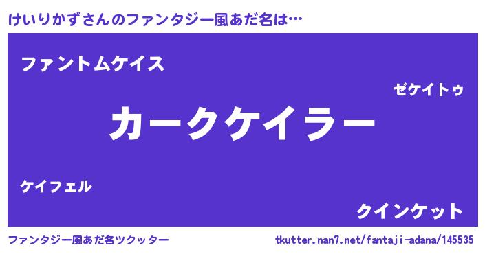 | ヒーロー風カッコイイあだ名 | 『暗黒騎士ケイ』『正義の使者けいりかず』 |