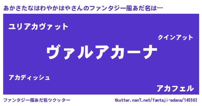 | 女子向けラノベタイトル風あだ名 | 『悪役あかさたなはわやかはやに転生したようですが、知った事ではありません』 |
