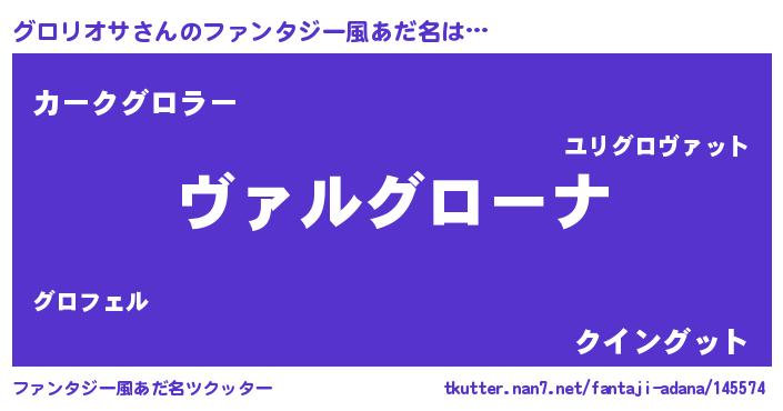 | 男性向けラノベタイトル風あだ名 | 『この素晴らしい世界にグロリオサを!』 |