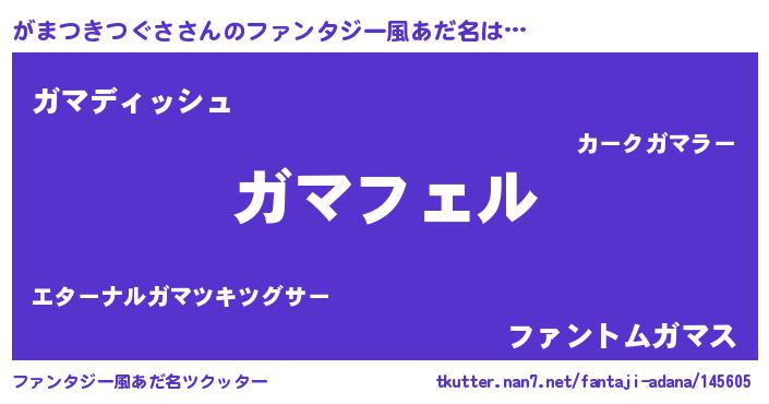 | 女子向けラノベタイトル風あだ名 | 『がまつきつぐさ姫と円卓の騎士』 |