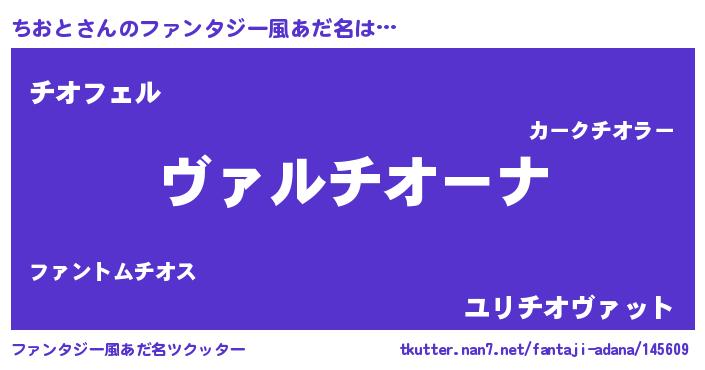 | 男性向けラノベタイトル風あだ名 | 『この素晴らしい世界にちおとを!』 |