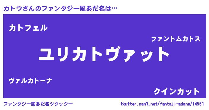 | ヘコむあだ名 | 『カトふぇ~』『カトぷりん』『豆乳』 |