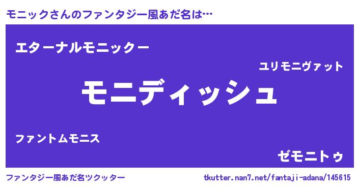 | 男性向けラノベタイトル風あだ名 | 『モニックという概念が存在しない退屈な世界 』 |
