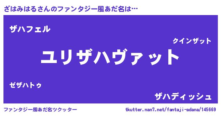 | ヘコむあだ名 | 『ざはっふぃ~』『ざはみはる(小並感)』 |