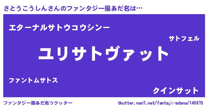 | 女子向けラノベタイトル風あだ名 | 『さとうこうしんの玉の輿計画!』 |