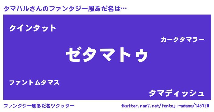 | 意味不明あだ名 | 『自称タマハル』『永久保存タマハル』 |